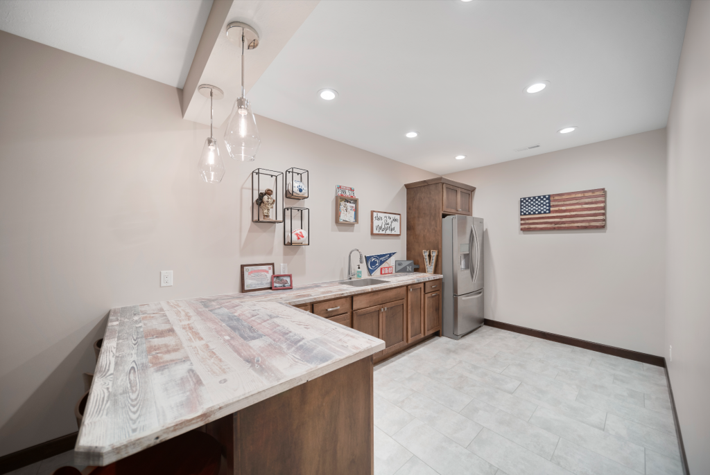 Some of our favorite details include: immaculate tile work, unique cable railing on the stairway, quartz countertops, a natural stone fireplace, and a basement wet bar.