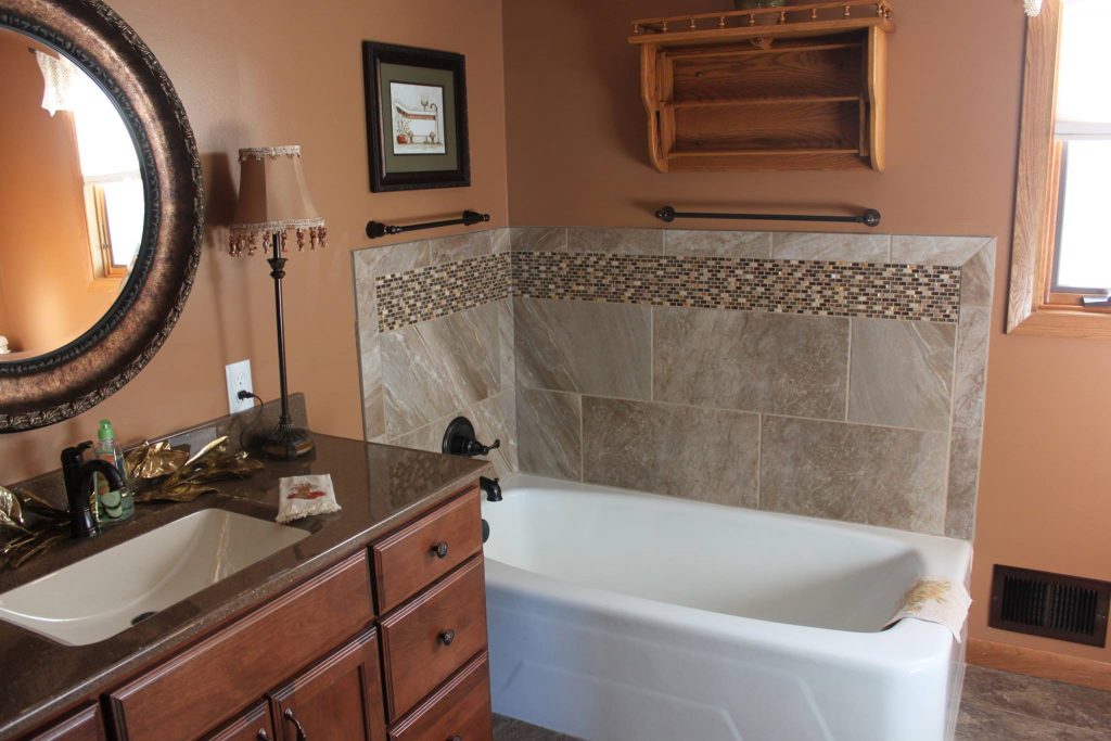 Andrews Wet Bar Stunning wet bar featuring Cambria Quartz countertops with a chiseled edge, a Ragno Glossy Brick tile backsplash and custom built…